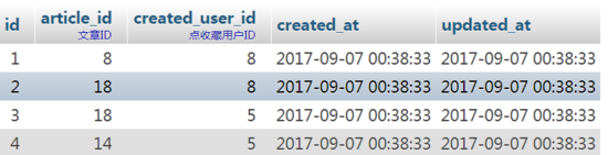 用attach()方法添加关联,比如让id为1用户收藏id为1的article