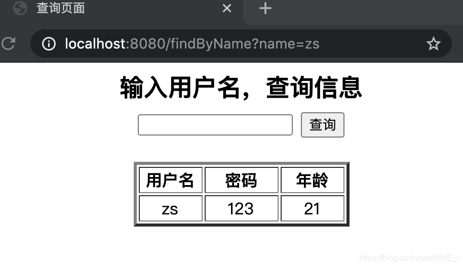输入用户名->显示该用户的用户名、密码、年龄
