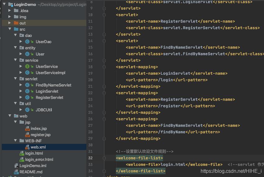 welcome-file>login.html/welcome-file> !--servlet 作为默认欢迎文件 ‘/'需要去掉-->