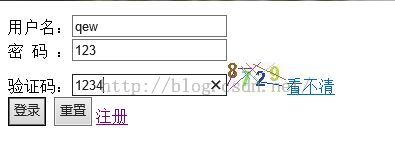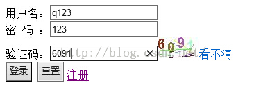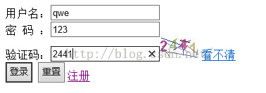 验证码:input type="text" name="checkCode">img src="/LOGIN/immg" id='imgid'>a href="javascript:flush()">看不清/a>//需要重写一个js进行刷新