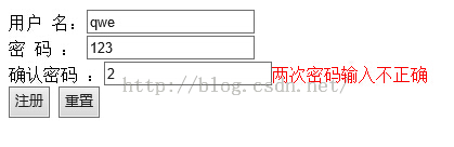 确认密码 :input type="text" name="pwd2" id="pwd2" onblur="check2()"/>span id="spanid2">/span>br/>