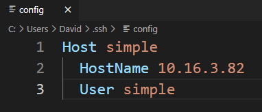 输入完,会弹出一个config的文件,它已经在本地的C:\Users\David.ssh下面创建了一个配置文件