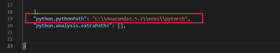 在搜索框输入python.pythonpath,并在下方输入框中填入Anaconda的安装路径