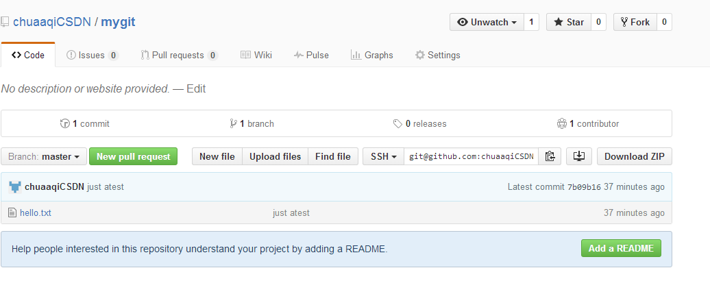 $ git remote add origin git@github.com:chuaaqiCSDN/mygit.git