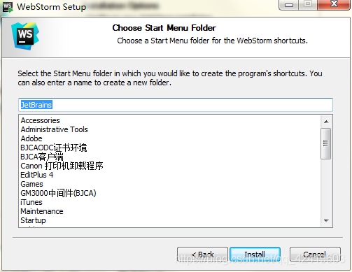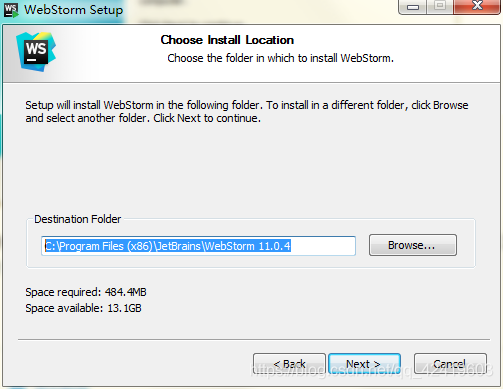 (4)单击Next按钮(下一步),选择browse(选择安装的路径),默认路径为‘C:\Program Files (x86)\JetBrains\WebStorm 11.0.4',选择完后单机next即可。