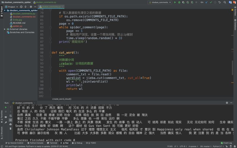 数据抓取下来之后,我们就来使用词云分析一下这部电影吧!