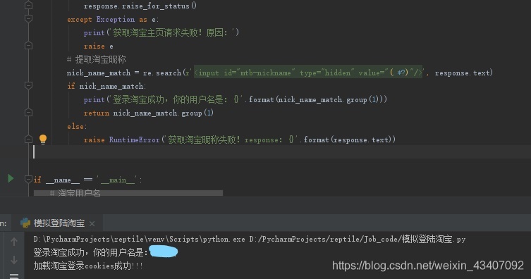 print('登录淘宝成功,你的用户名是:{}'.format(nick_name_match.group(1)))