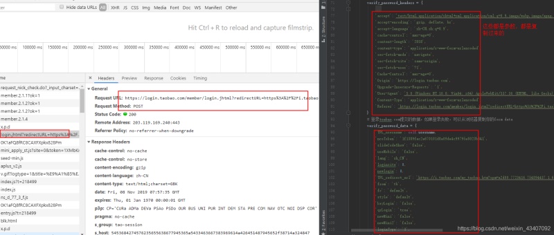 这里一步也就是上面时序图图中的第5步:请求登录,这里会将用户名、ua参数、加密密码等30十几个参数post到淘宝(taobao.com)去验证。我们来用代码实现一下,大家别被这么多参数吓到,都是从浏览器复制过来的!