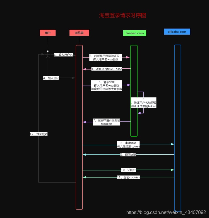 这里也许有同学会提出疑问:为什么淘宝(taobao.com)验证通过之后还要拿着 token去阿里巴巴(alibaba.com)交换st码呢? 这个我们放后面讲!