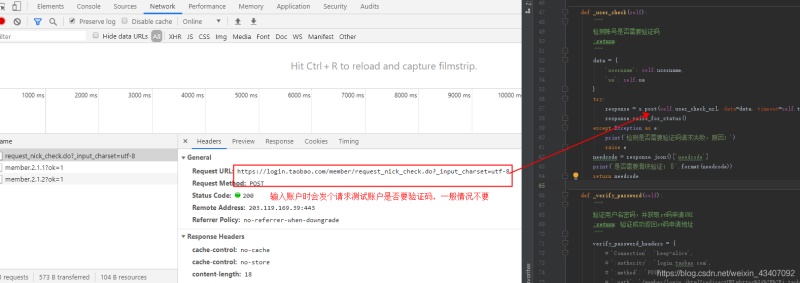 输入用户名后,浏览器会向淘宝(taobao.com)发起一个post的请求,判断是否出现滑块验证!