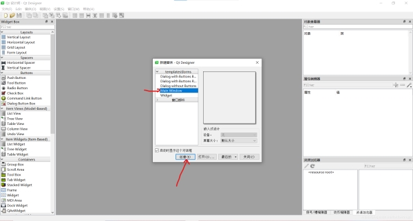 Dialog with Buttons Bottom:按钮在底部的对话框窗口Dialog with Buttons Right:按钮在右上角的对话框窗口Dialog without Buttons:没有按钮的对话框窗口Main Window:一个带菜单,停靠窗口和状态栏的主窗口Widget:通用窗口