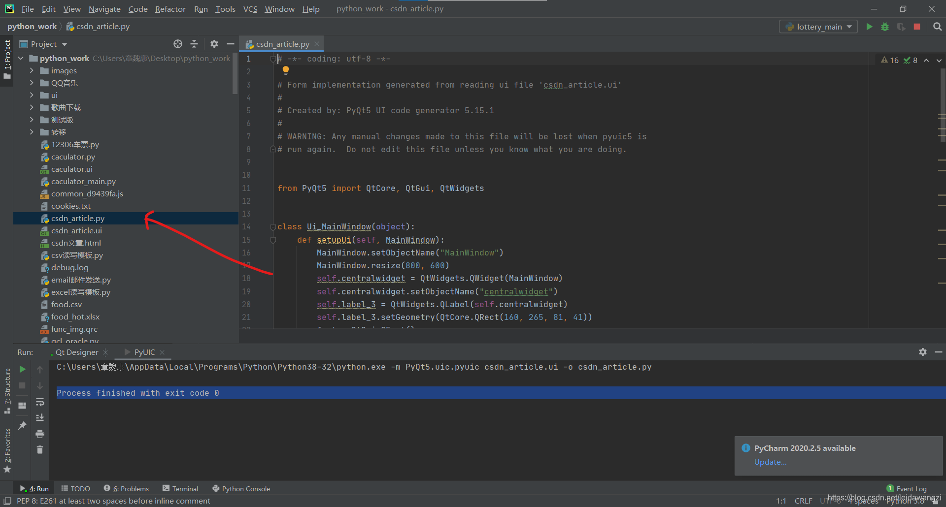 即表示转换完成,在当前目录下可以找到csdn_article.py文件。