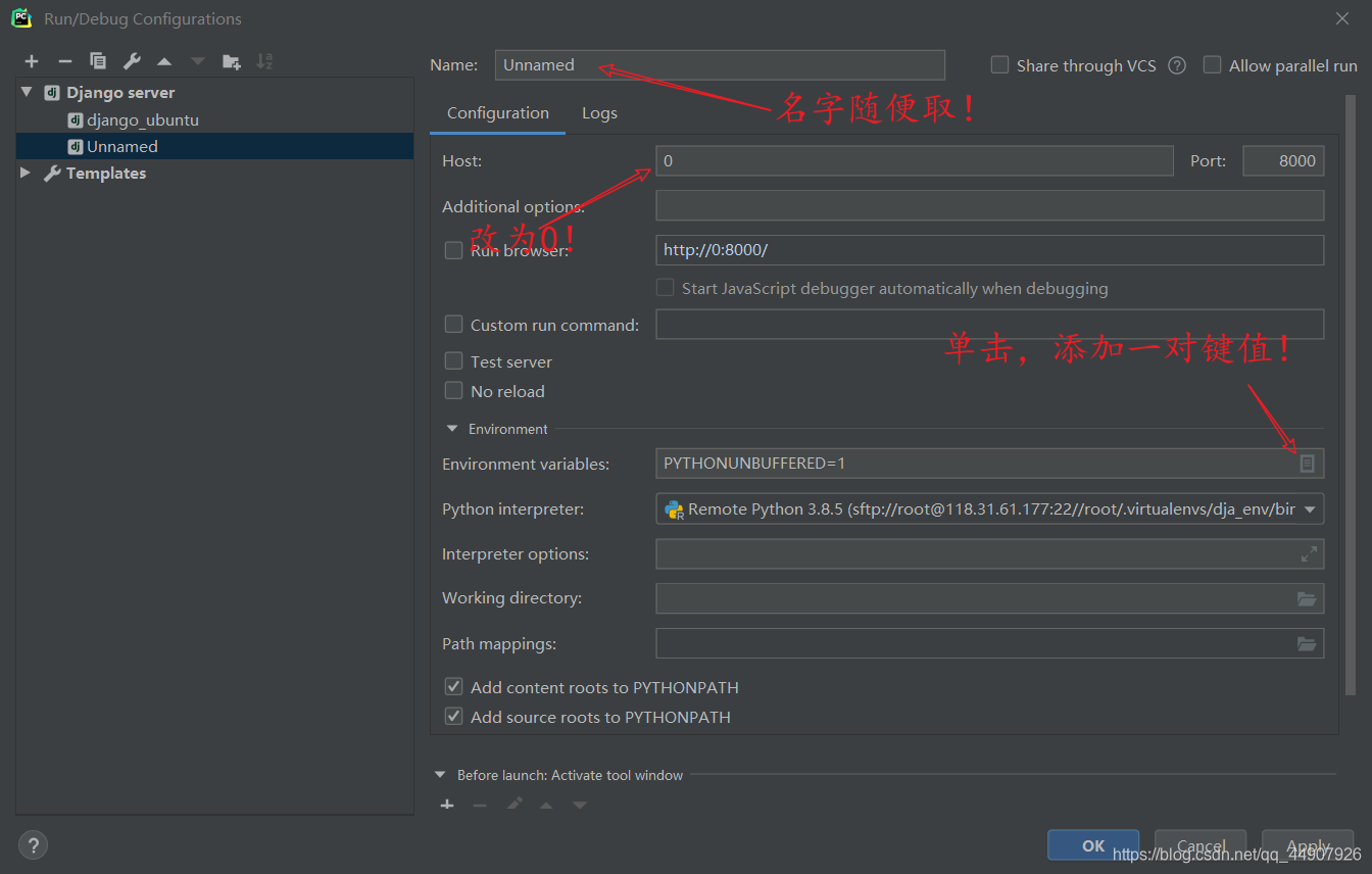 2.为Django项目指定远程中创建的虚拟环境下的python解释器: