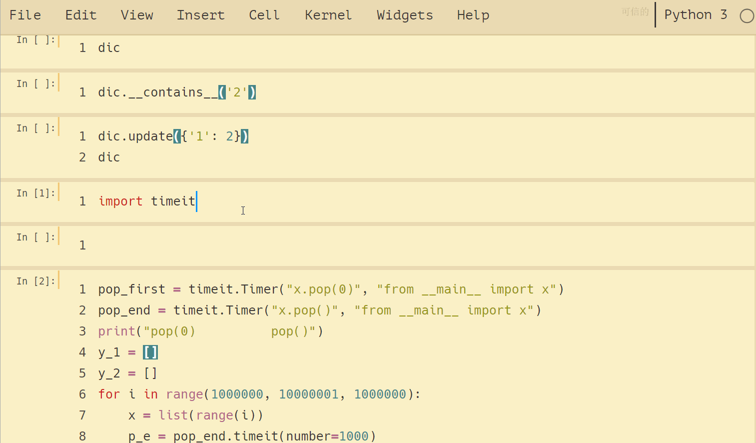 - 这是 Python 中两种非常重要的数据类型,后面会用来实现各种数据结构,通过运行试验来估计其各种操作运行时间数量级。