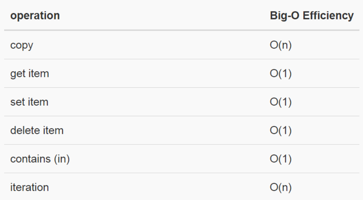 - 前面我们了解了 “大O表示法” 以及对不同的算法的评估,下面来讨论下 Python 两种内置数据类型有关的各种操作的大O数量级:列表 list 和字典dict。