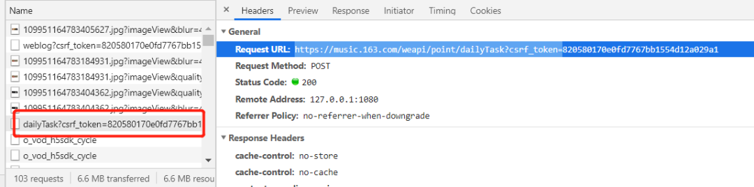 signin_url = 'https://music.163.com/weapi/point/dailyTask?csrf_token=' + csrf