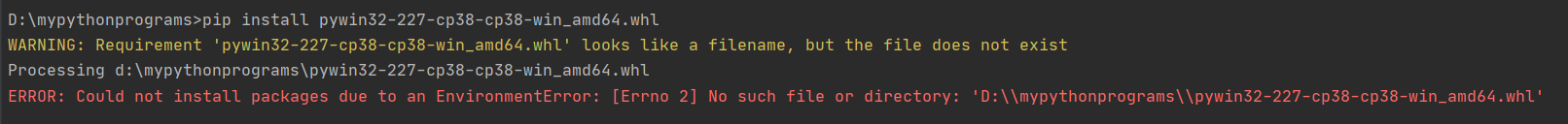 round 3、pycharm中的Terminal执行 pip install pywin32-227-cp38-cp38-win_amd64.whl ,失败