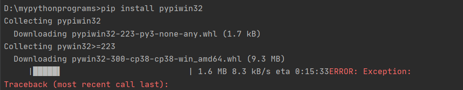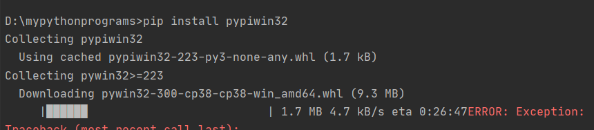 round 2、pycharm中的Terminal执行pip install pypiwin32,两次均失败