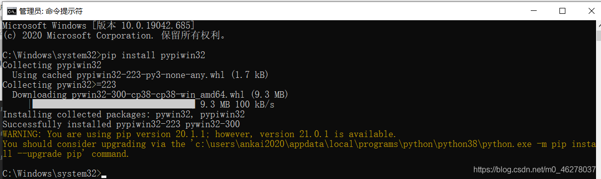 round 4、用from win32 import win32gui 替换 import win32gui ,失败。 round 5、CMD打开命令提示符,以管理员权限运行pip install pypiwin32,成功。