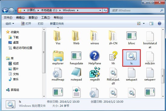 3.返回桌面,可以看到刚刚新建了一个批处理文件,接下来,将该批处理文件复制到,C\Windows文件夹目录中即可,这种,ls命令就可以正常使用了。