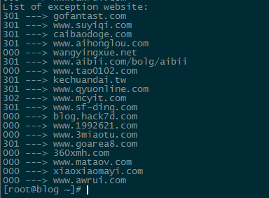 随后,我在VPS上写了一个多线程的网站状态检测脚本,直接从数据库load站点地址,然后用curl去检测返回码,发现速度非常好,基本1分钟内就能出结果
