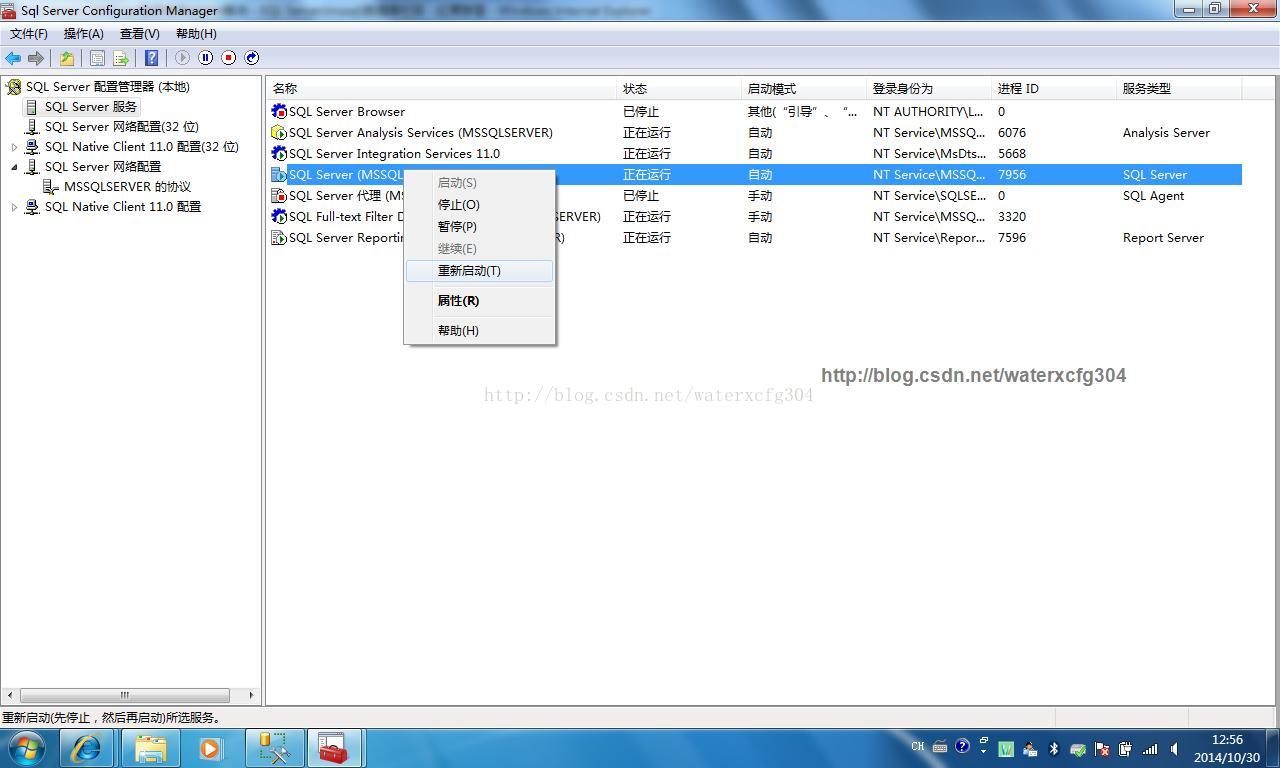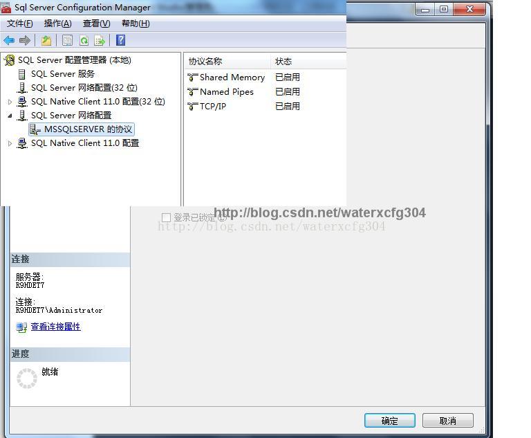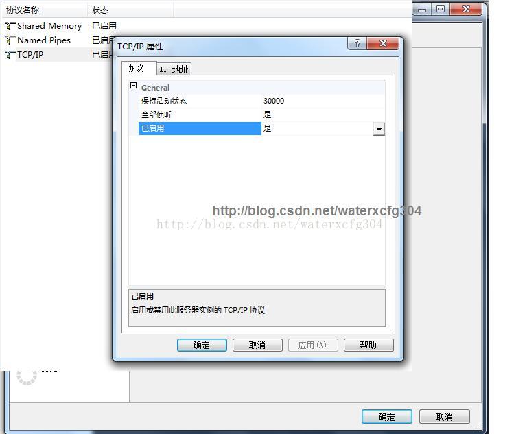 1.打开“SQL Server 配置管理器”,展开“SQL Server 网络配置”,把“MSSQLSERVER 的协议”中的“TCP/IP”开启: