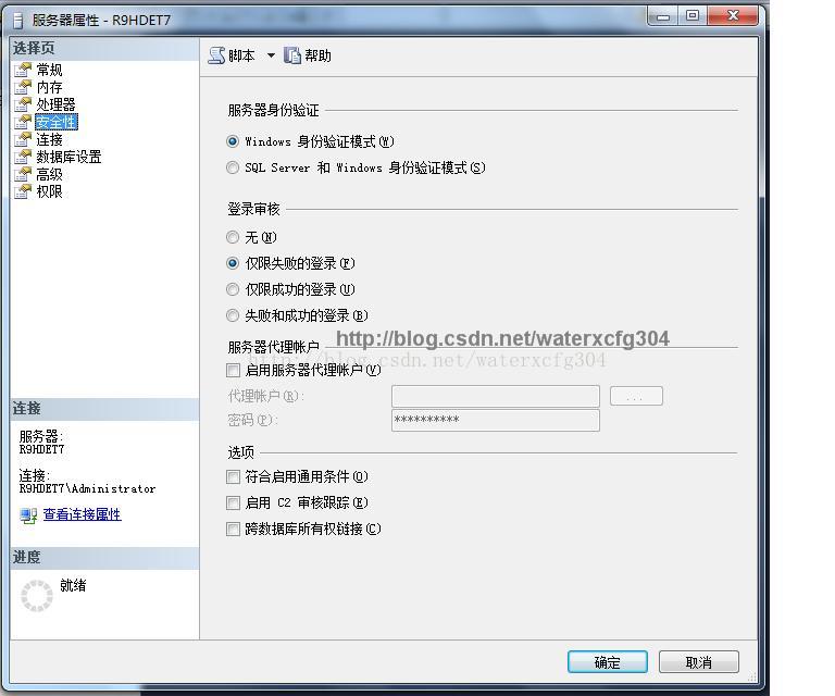 2.在弹出的对话框中,将“安全性”中的“服务器验证方式”设置为“SQL Server 和 Windows 身份验证模式”: