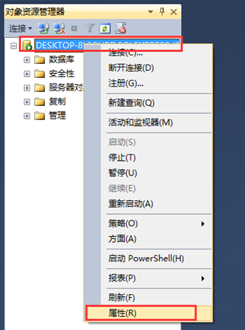 4、对着服务器,点击鼠标右键,选择里面的属性