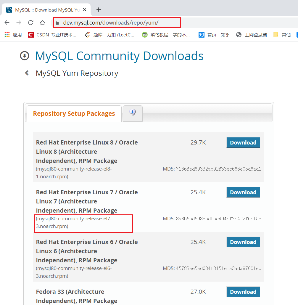 比如说我的是http://dev.mysql.com/get/mysql80-community-release-el7-3.noarch.rpm