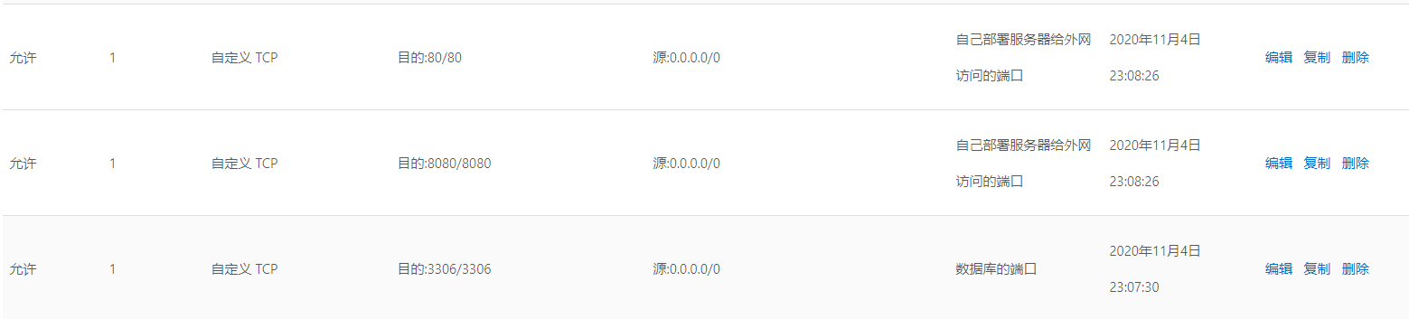 后面修改阿里云的安全组规则:在 阿里云控制台防火墙处,添加新的规则 开放3306端口: