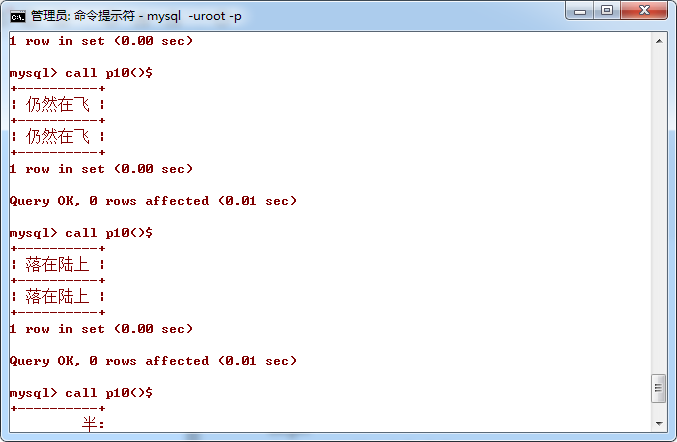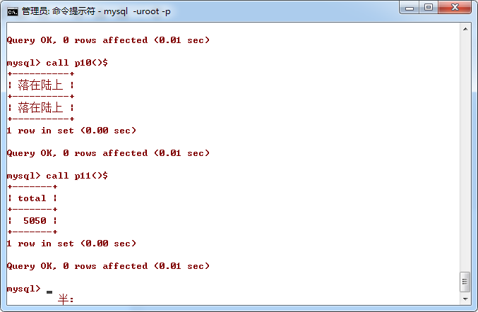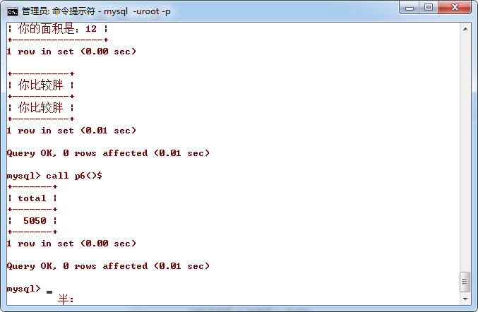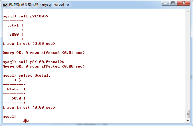 call p8(100,@total); --100为输入型参数,而@total为输出型变量