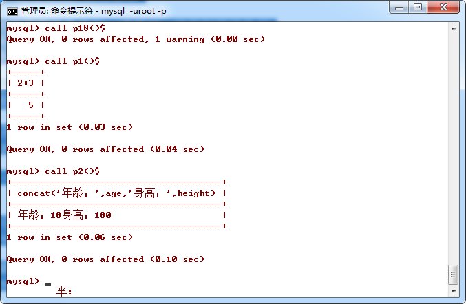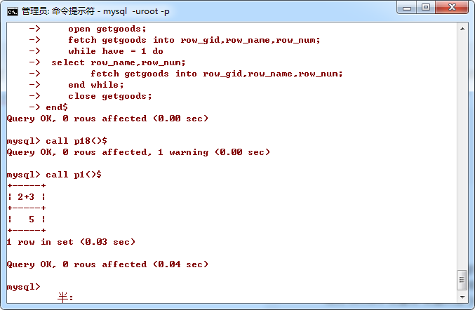 注意:我这里已经将MySQL的结束标识符改为$,如果要知道怎么设置为$,请参考我的另一篇文章:MySQL触发器。