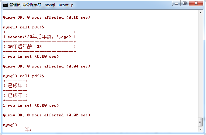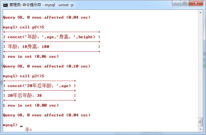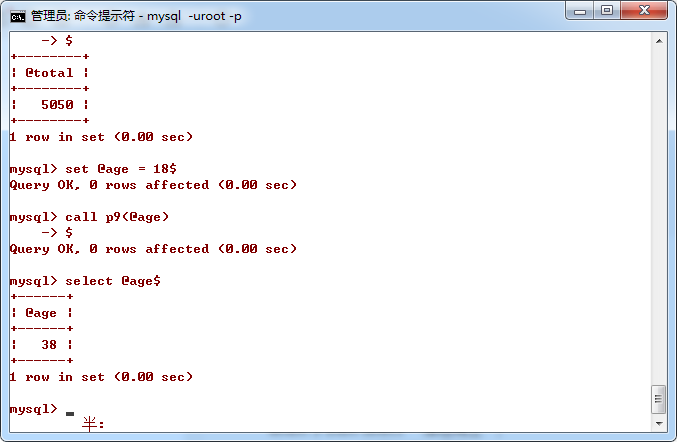 call p9(@age); --调用p9存储过程,@age变量为实参