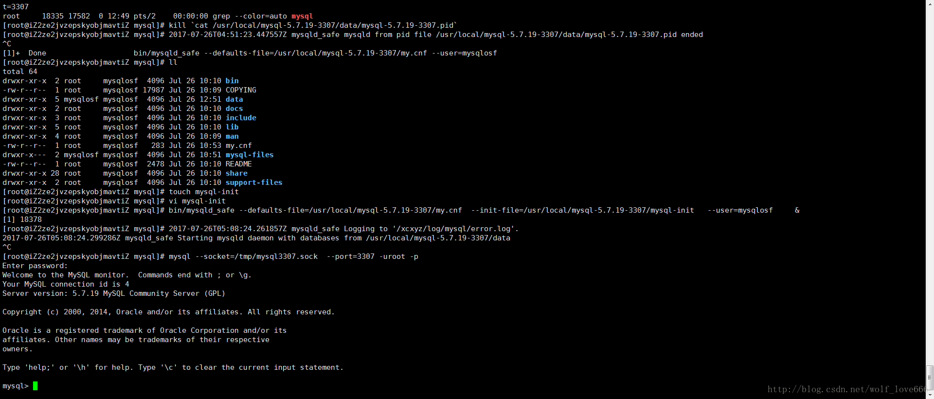 初级第一次在Linux下安装MySQL-5.7.19版本教程请看上一篇,如果已经会安装了,那么请看这篇linux下安装多个mysql-5.7.19