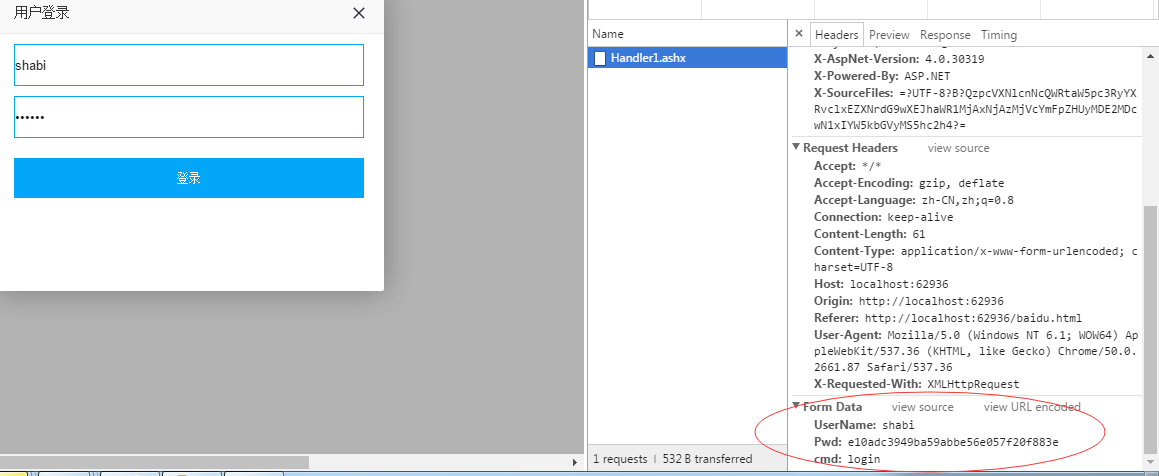$.post("/Handler1.ashx", { "UserName": username, "Pwd": pwd,"cmd":"login" }, function (data)