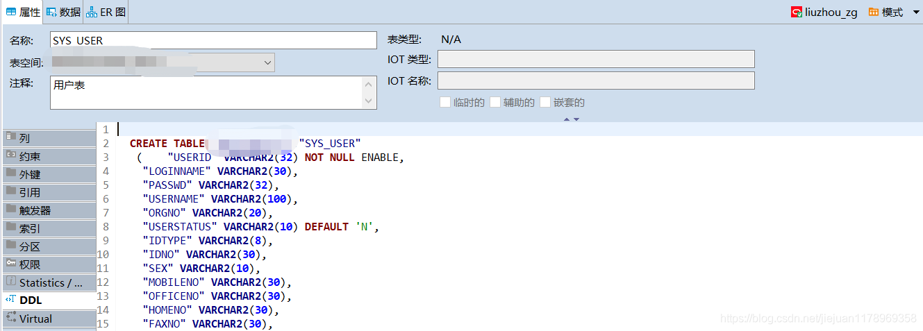 1:与plsql相比,Dbeaver没有右击直接查看表注释的功能,但是Dbeaver提供了一个“打开声明”的功能,里面可以查看一些比较实用的内容:表列注释、创建该表的create语句: