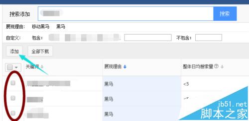 5、这样来到添加关键词页面,有搜索添加,推荐等,在右侧也可以点击添加,来添加关键词,如图所示