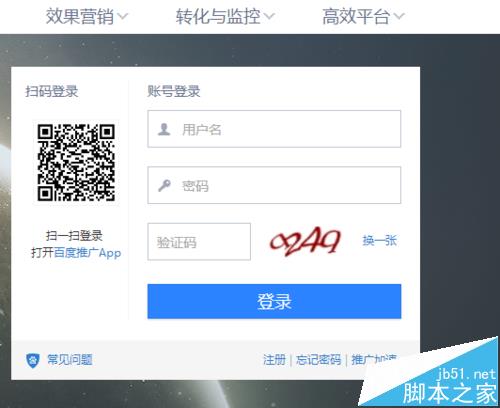 1、首先在百度推广后台,输入账号和密码进行登录。