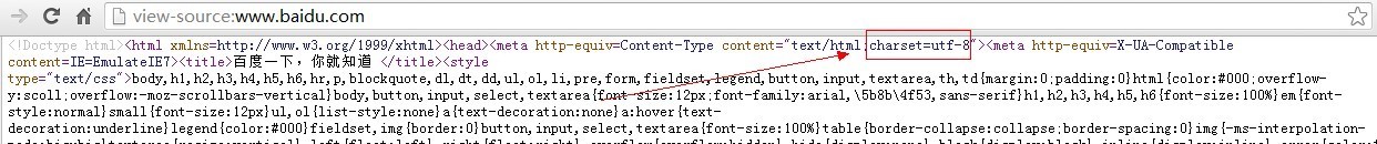 困扰广大站长的主要是编码问题,在之前,百度采用的是中文编码GBK,Google是全球通用的UTF-8,中国站长面对的两大搜索引擎编码不一致的确是非常头痛的一件事,采用任何一种都会导致一个搜索引擎出现乱码的问题。这是阻碍广大站长采用中文URL的一个重要原因。但这个问题已经不复存在了,现在打开百度的首页,查看源代码,百度已经完将编码改变成了UTF-8,下图为证: