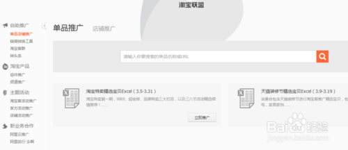 点击联盟产品,把你在百度上认为好的,想要推广的产品名称黏贴到搜索框里