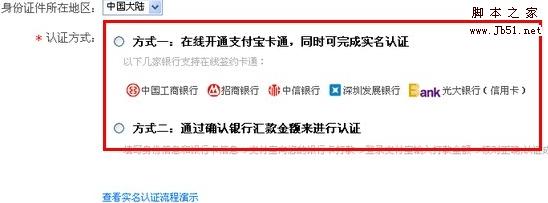请正确选择您身份证件所在的地区,正确选择后才能顺利的完成您的支付宝实名认证;(此流程以中国大陆用户为例)