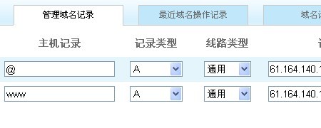 这两天使用的中电华同的虚拟主机,因为他们是不提供免费的dns解析服务的,我的54tomgo.com这个域名,是在国外的godaddy注册的,他们也没有免费的dns服务。于是我想到了免费的dnspod。dnspod的使用非常方便。首先你在dnspod免费注册一个用户,注意注册时候网站要填写你的域名;进入后,先添加域名,然后添加A记录。记录值是填写你的虚拟主机的IP。这个你可以用windows的CMD,ping你的虚拟主机的2级域名,就可以得到了。主机记录留空,就是54tomgo.com绑定到首页;然后再绑定一个主机纪录写www的;这样输入www.54tomgo.com也绑定到首页了。非常的简单。