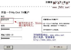 如注册“zhbo.tk”域名,仅仅填写“zhbo”即可。然后点击“下一步”继续注册。