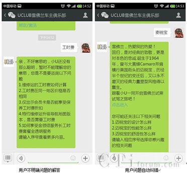 而近日,雪佛兰的智能微信客服“UCLUB雪佛兰车主俱乐部”正式上线,该平台由上海通用与小i机器人共同打造,可提供7*24小时的智能客户服务,通过它,用户可进行产品咨询、车辆使用咨询,开展试乘试驾预约,事故协助处理,24小时紧急道路救援,维修保养预约,经销商、维修站查询等一系列相关业务。