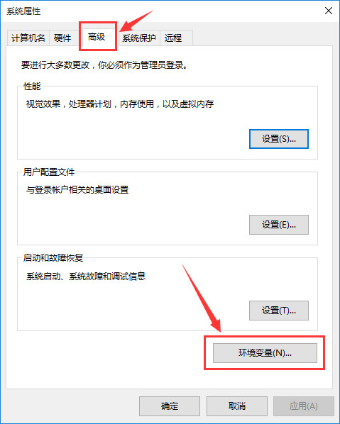 在这个界面,我们选择“高级”选项卡,然后选择下面的“环境变量”,点击进去,如下图所示: