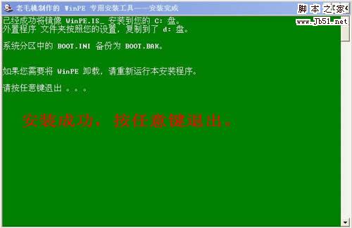 如果你原来的系统安装盘是C盘,哪么就请将PE系统安装在D或E等非系统安盘。