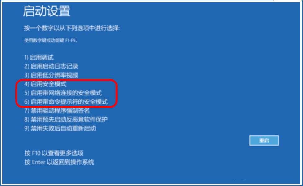 打开【启动设置】窗口,可以看到进入系统安全模式有三种方式: