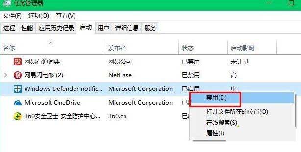 6、在任务管理器选择需要禁用的程序,右键点击禁用或者启动即可。