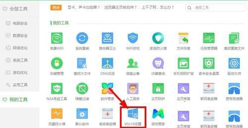 1、点击打开电脑管家的主界面,选择打开工具栏搜索win10设置工具。