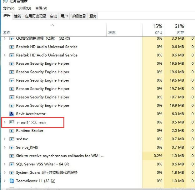 2、打开任务管理默认进入进程界面,在"映像名称"中寻找"rundll32.exe"进程